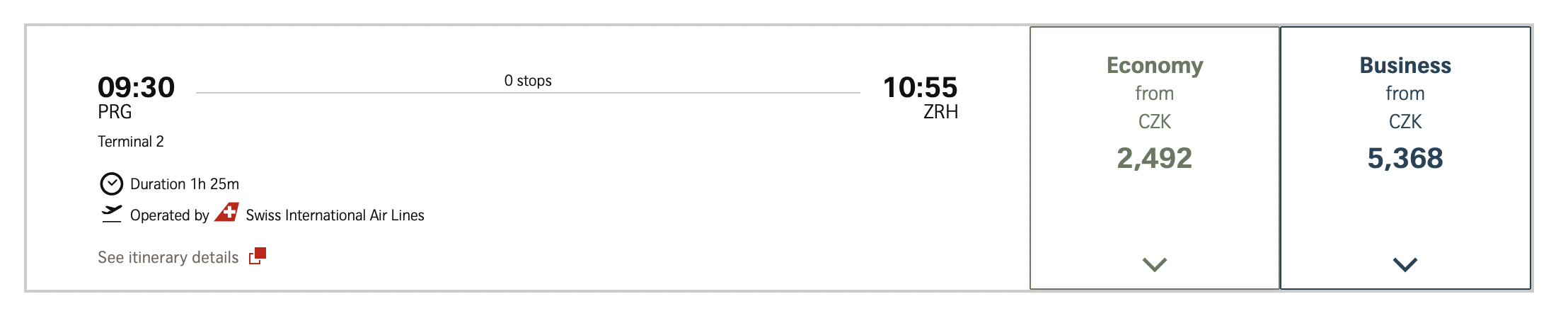 Počítejte s tím, že uvedená cena platí za jednosměrný let, přičemž na cestu zpět lze využít běžné spojení v ekonomické třídě za cca 2 000–3 000 Kč, což stále dělá z celé cesty velmi zajímavý zážitek za rozumný rozpočet. Swiss nabízí výhodnější ceny při nákupu zpátečních letenek, takže lety tam i zpět přidejte na stejnou rezervaci.