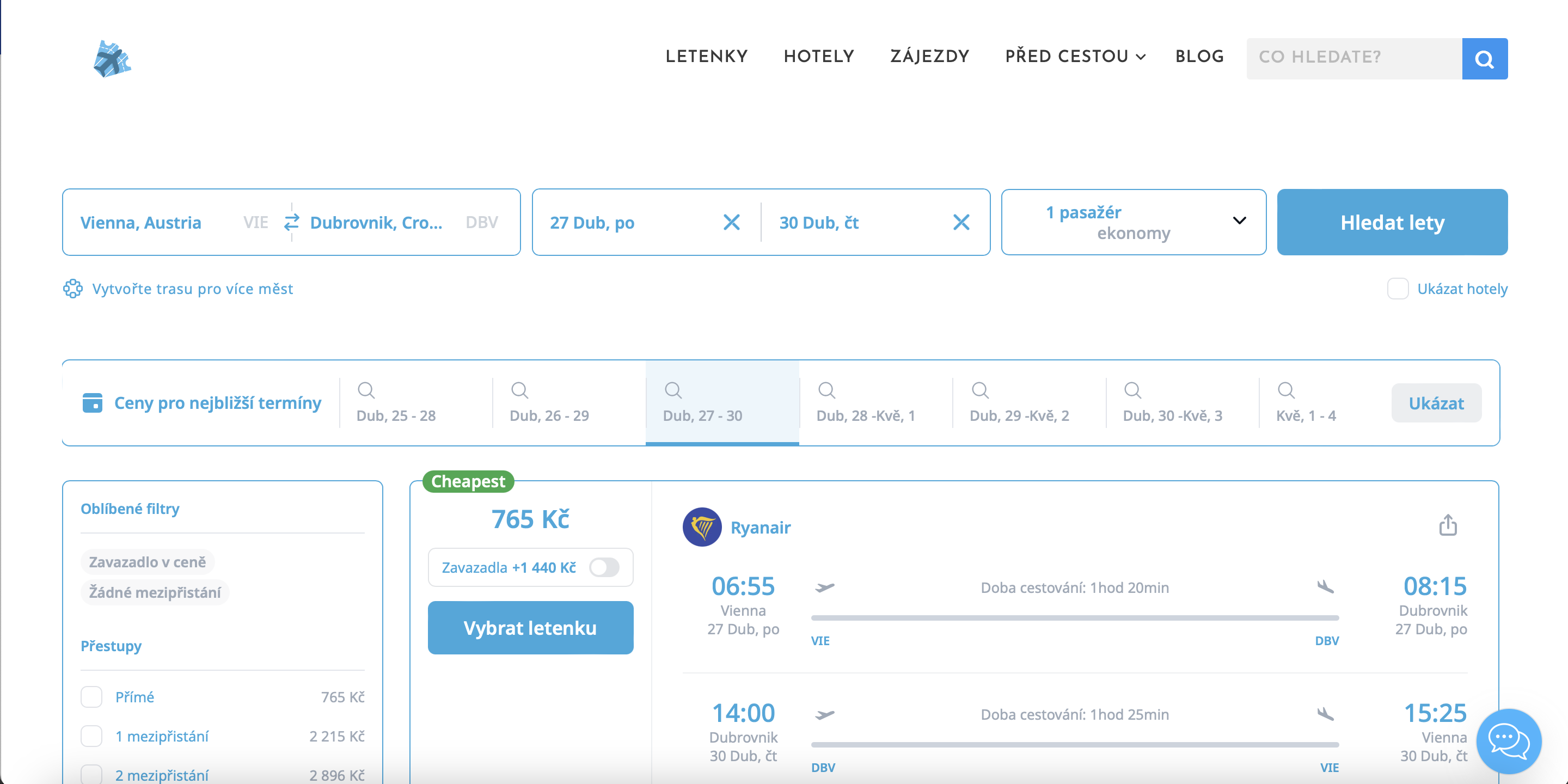 Na Jadran za výjimečnou cenu! Zpáteční letenky z Vídně do Dubrovníku pořídíš už za 765 Kč na termíny v dubnu 2026. Pokud ti duben nevyhovuje, k dispozici jsou i lehce dražší termíny v květnu a červnu, které jsou ale stále velmi výhodné – ideální pro jarní nebo začínající letní dovolenou u moře.