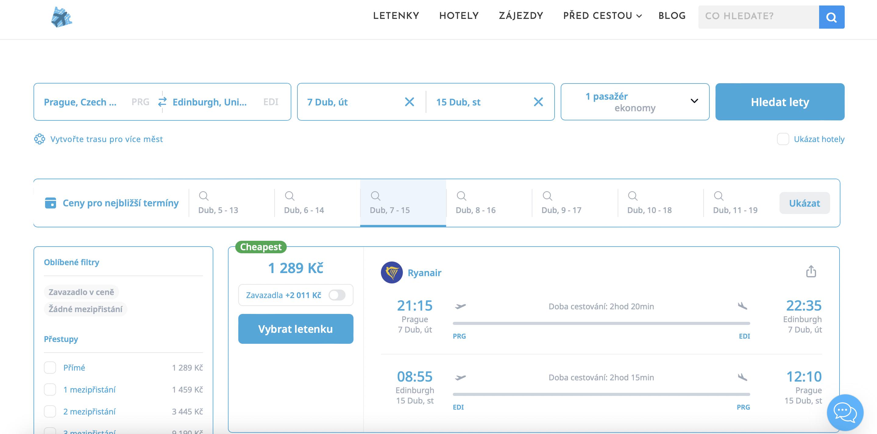 - 🛫 Let: přímý let (délka letu cca 2h 15m)