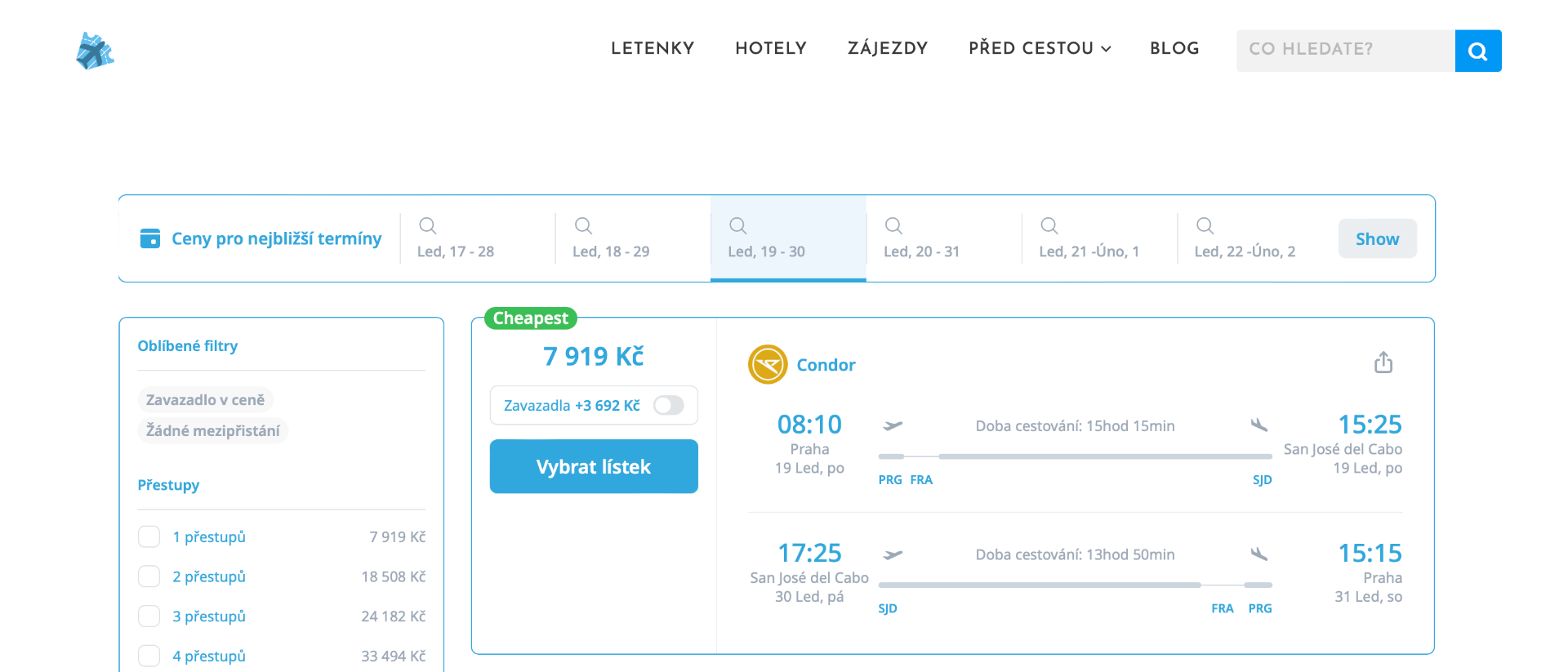 Výrazná last-minute nabídka pro milovníky tepla, moře a zimního úniku! Zpáteční letenky z Prahy do Los Cabos teď pořídíte už za 7 919 Kč. Na nic nečekejte! Jste připraveni v pondělí odletět?