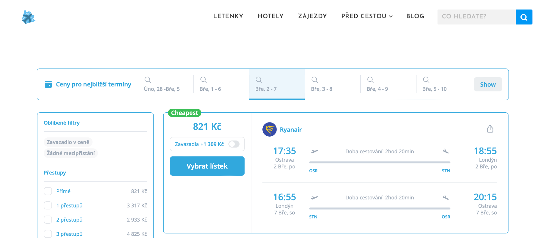 - 🛫 Let: přímý let (délka letu cca 2h 20m)