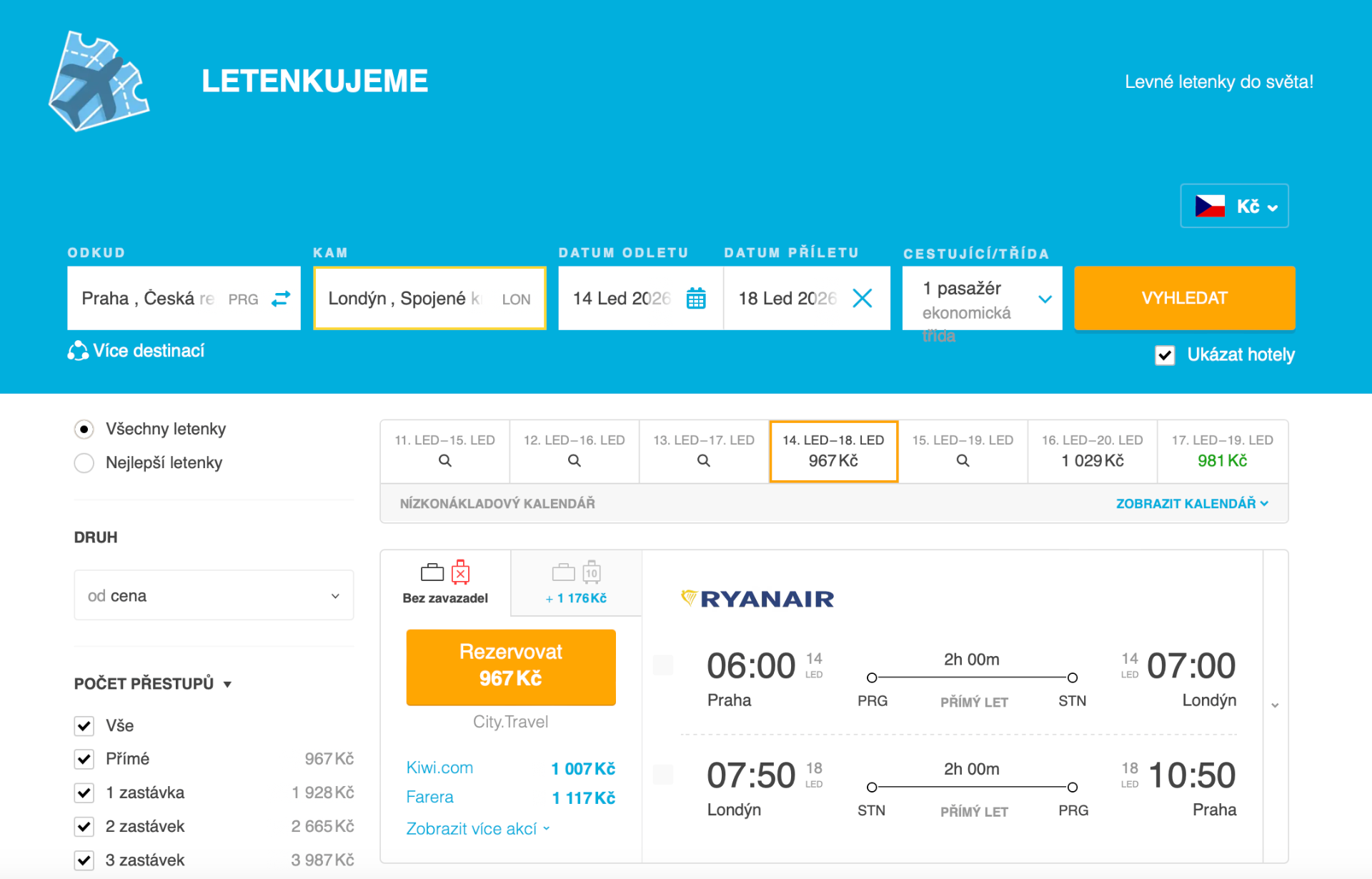 Krátký výlet do jedné z nejživějších metropolí Evropy teď vyjde opravdu levně. Zpáteční akční letenky z Prahy do Londýna pořídíte už za 967 Kč, a to na termíny v lednu 2026. Ideální příležitost pro víkendový pobyt i několikadenní city break, kdy si užijete město bez letních davů a za výrazně nižší ceny ubytování než aktuálně v prosinci. Londýn je skvěle dostupný, perfektně propojený městskou dopravou a v zimních měsících má jedinečnou atmosféru.