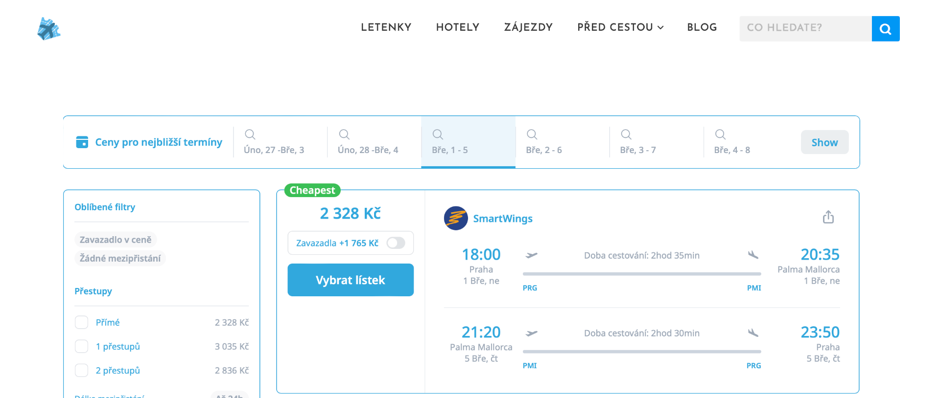 - 🛫 Let: přímý let (délka letu cca 2h 30m)