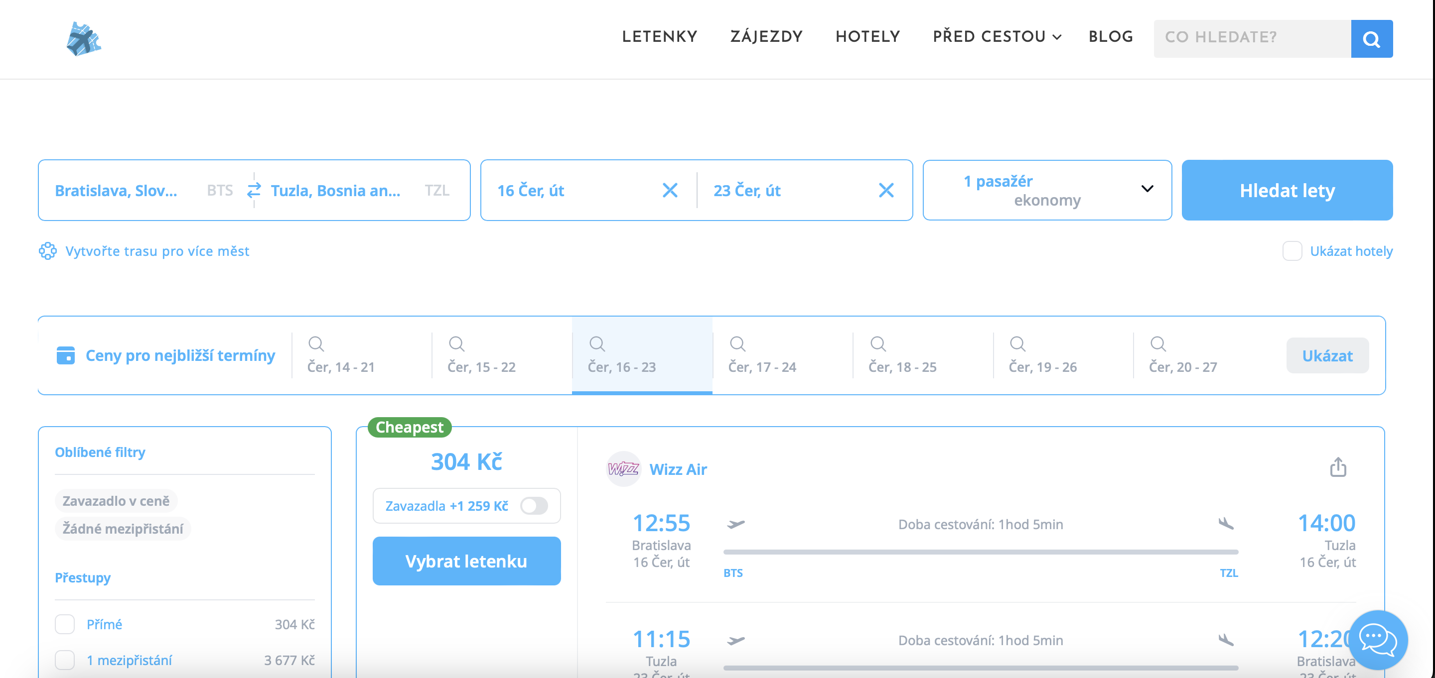 Tohle je přesně ten moment, kdy dává smysl přestat váhat. Zpáteční letenky z Bratislavy do Tuzly se objevily už za 304 Kč na termíny v červnu 2026! Budou tohle nejlevnější letenky roku? Neváhej a vyraz poznávat krásy Bosny a Hercegoviny. Hledej odlety v úterý, čtvrtek, sobotu a neděli v obou směrech. Tahle akce pravděpodobně dlouho nevydrží – při podobných cenách mizí letenky opravdu rychle, takže pokud tě láká Balkán, nemá smysl dlouho čekat.