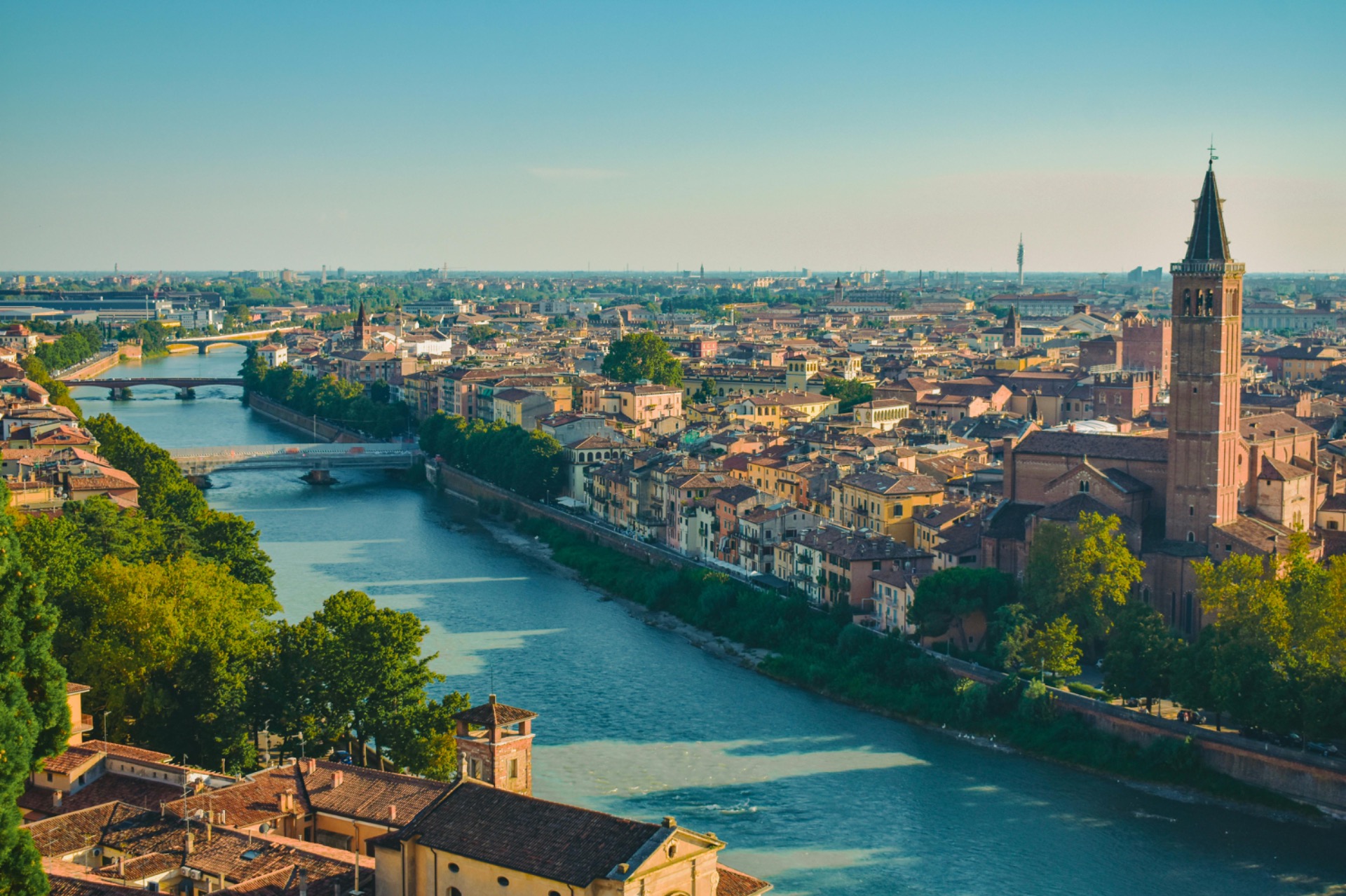 Verona láká návštěvníky svou kompaktní velikostí – většinu nejzajímavějších míst zvládnete během víkendu pohodlně projít pěšky. Dominantou města je Aréna di Verona, starověký amfiteátr, který je jedním z nejzachovalejších na světě a v létě hostí slavné operní večery. Projděte se po Piazza delle Erbe, historickém náměstí plném trhů, kaváren a elegantních paláců, nebo si vychutnejte výhled z vyhlídkové terasy u Castel San Pietro.