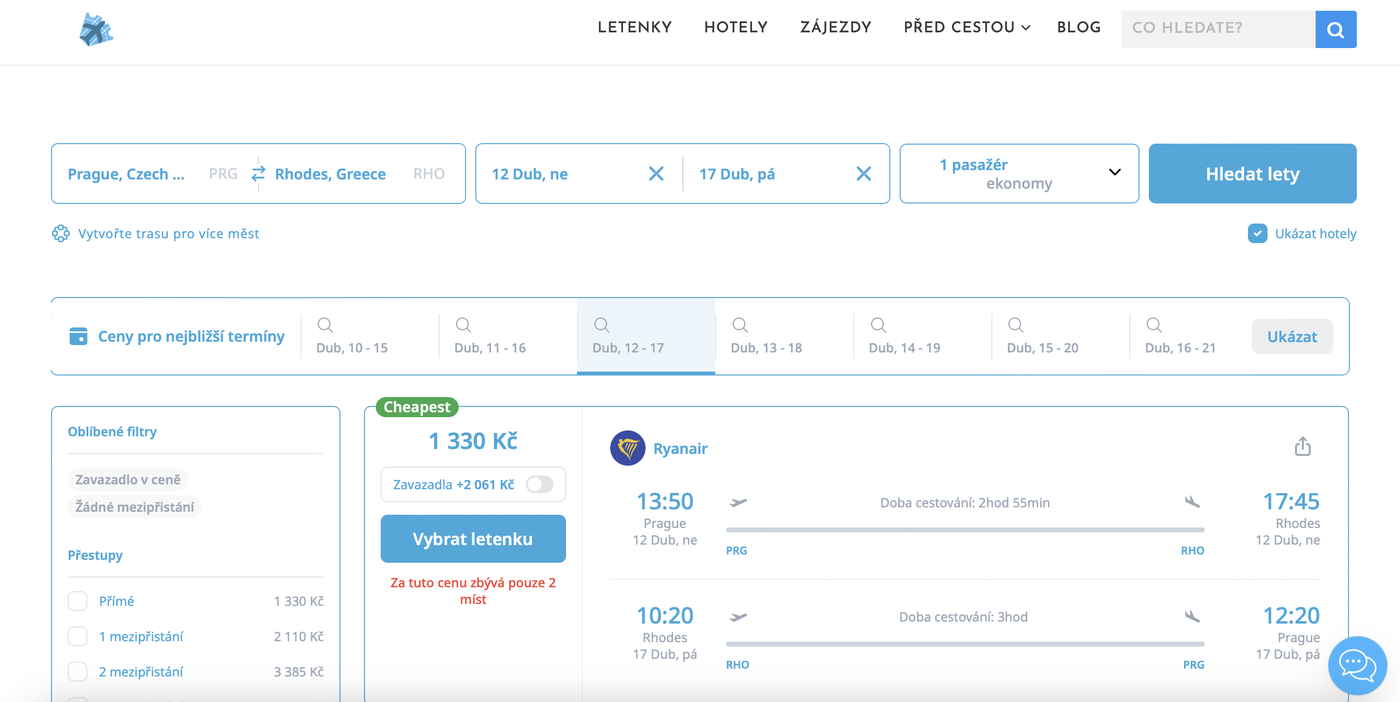 Ještě lepší cena na jarní Řecko! Zpáteční letenky z Prahy na Rhodos jsou nyní dostupné už od 1 330 Kč na termíny v dubnu 2026. Takto nízké ceny se u této oblíbené destinace neobjevují často, a právě duben je ideální – v Řecku už panuje příjemné počasí, ale hlavní turistická sezona ještě nezačala, takže si ostrov užijete v klidnější atmosféře.