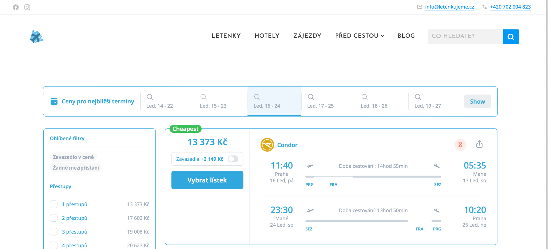 Pokud přemýšlíte o exotické dovolené na pláži ještě tuto zimu, teď je ta pravá chvíle! Akční last-minute letenky z Prahy na Seychely pořídíte už za 13 373 Kč, a to na termíny v lednu na týden pobytu. Tahle cena je na vzdálený tropický ráj skutečně atraktivní, takže pokud milujete slunce, moře a bílé pláže, nenechte si nabídku ujít!