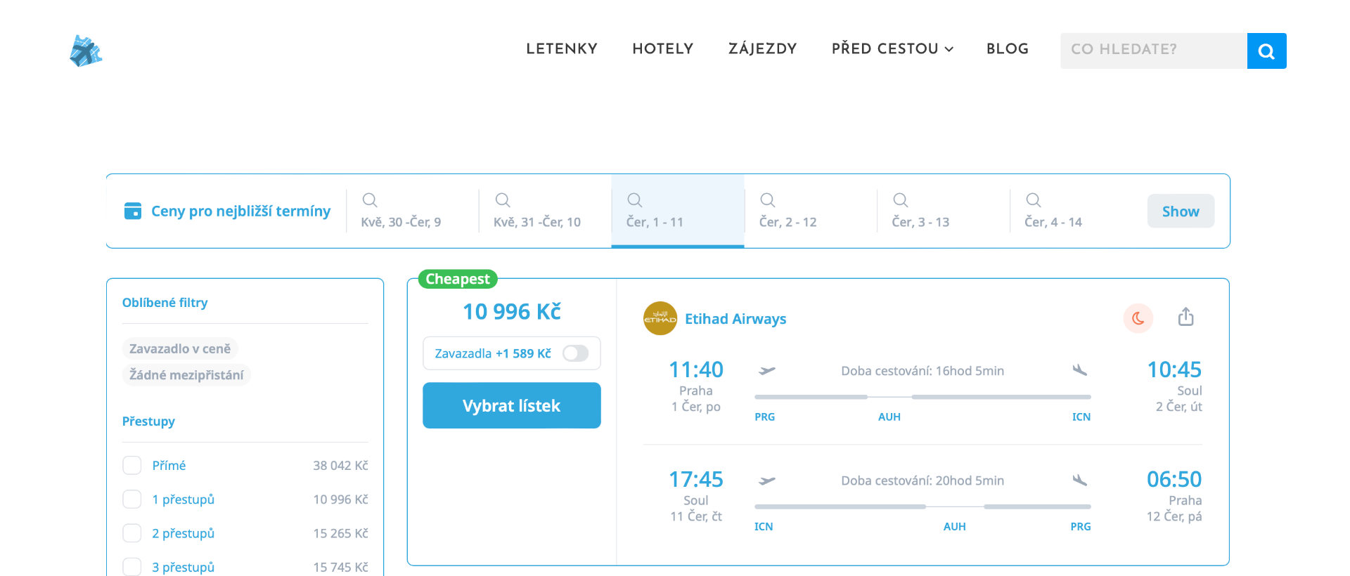 Vyrazte na dálkový výlet do Jižní Koreje za velmi příznivou cenu! Akční letenky z Prahy do Soulu s Etihad Airways seženete už od 10 996 Kč, a to na množství termínů v dubnu–květnu a září až listopadu. Letí se s pohodlným přestup v Abú Dhabí a tato cena je na trasu do Asie nadstandardně výhodná – ideální jak na jarní dobrodružství, tak na podzimní cestu plnou kultury, gastronomie a historie.