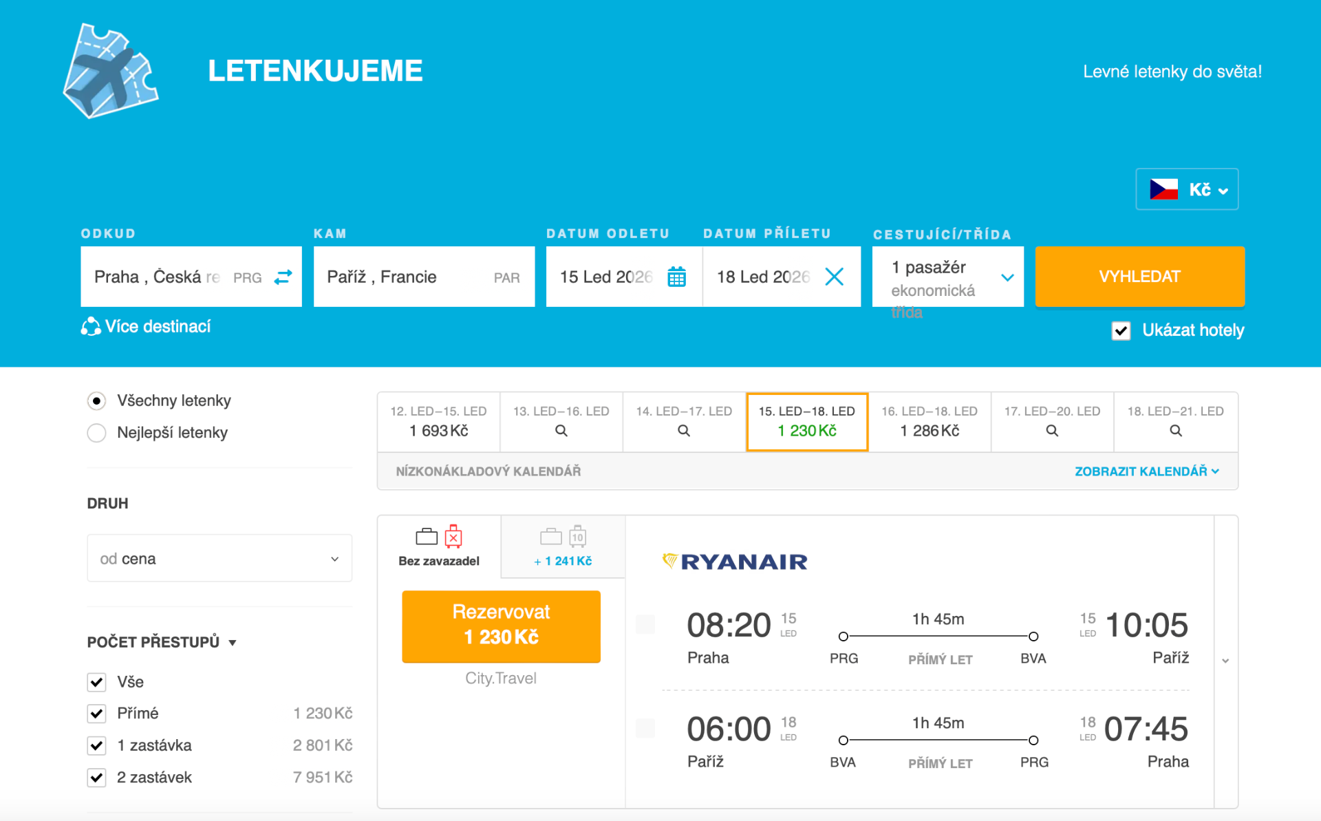 - 🛫 Let: přímý let (délka letu cca 1h 45m)